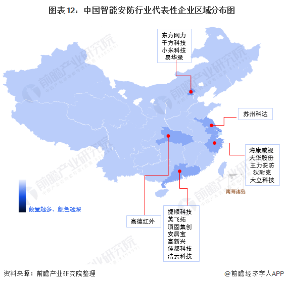從代表性企業分布情況來看,智能安防軟硬件及系統集成企業主要分布于珠三角、長三角以及北京等地區,運營服務商以廣東地區居多。